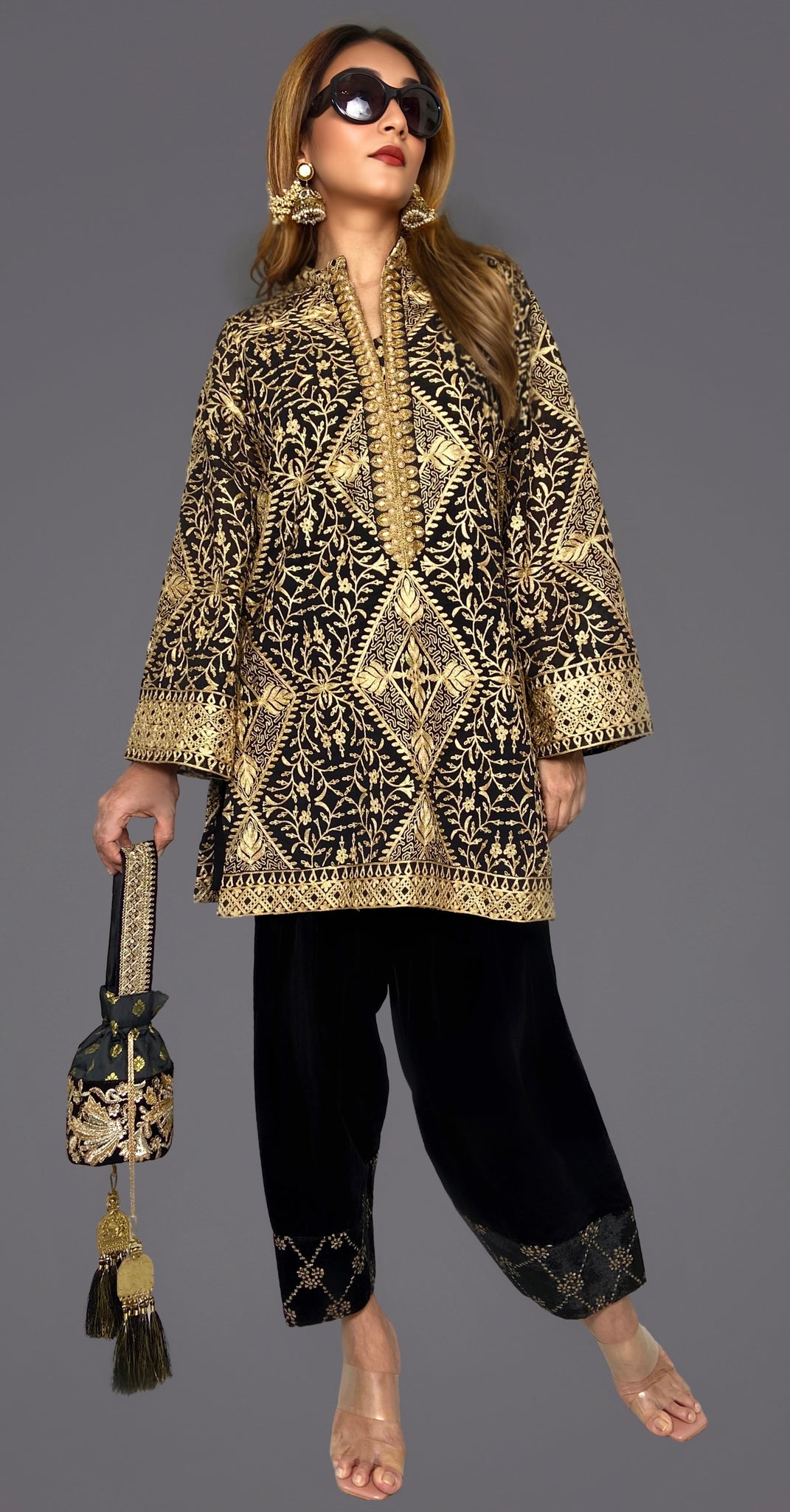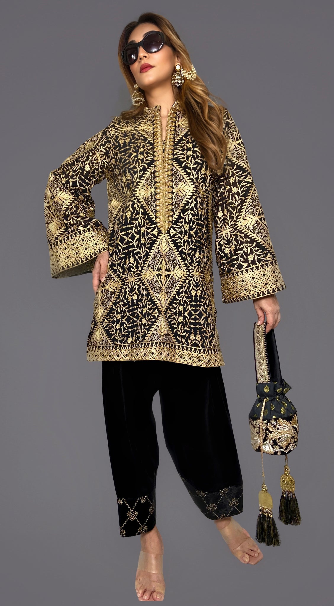 2) VELVET WITH EMBROIDERED DETAILING ON BORDER