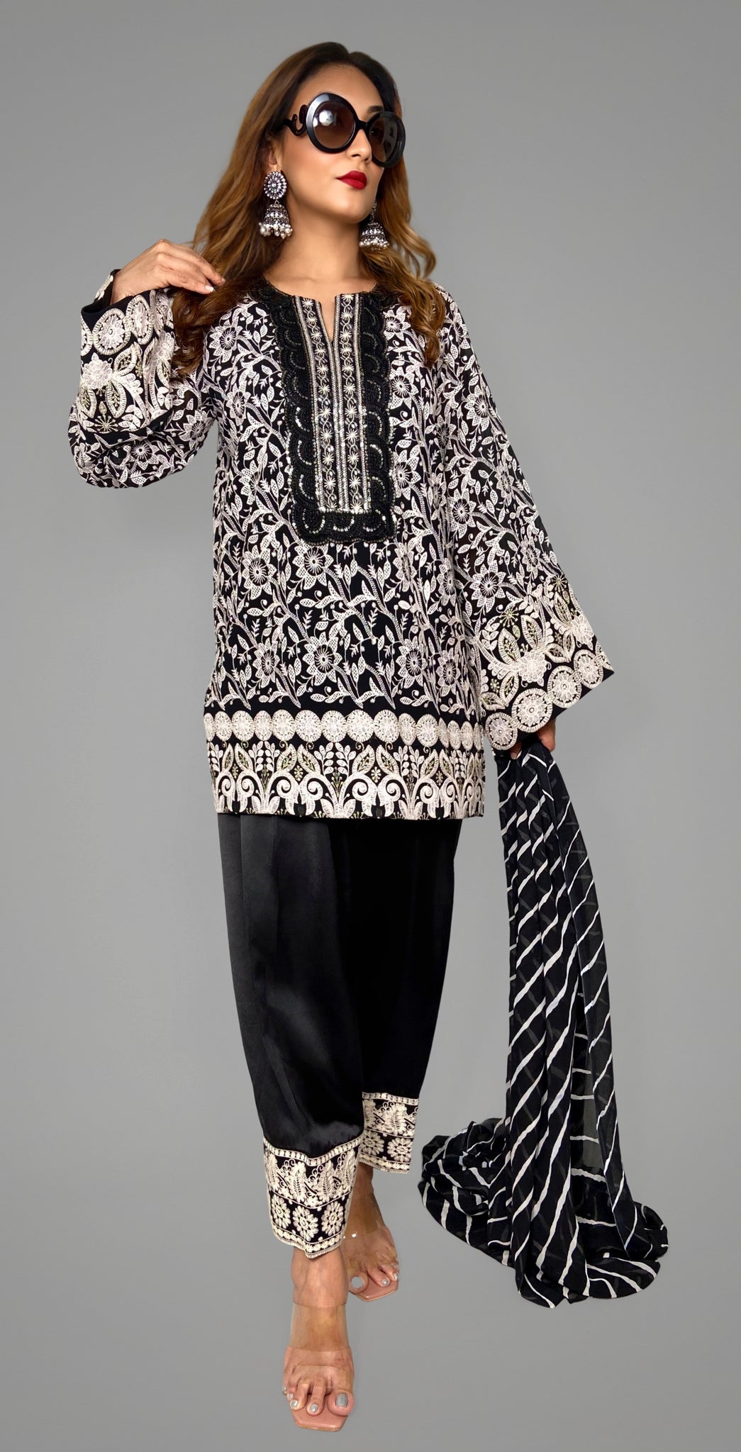 Our extremely lightweight summer friendly front back heavily embroidered kameez-shalwar-dupatta set is sure to make heads turn this season.