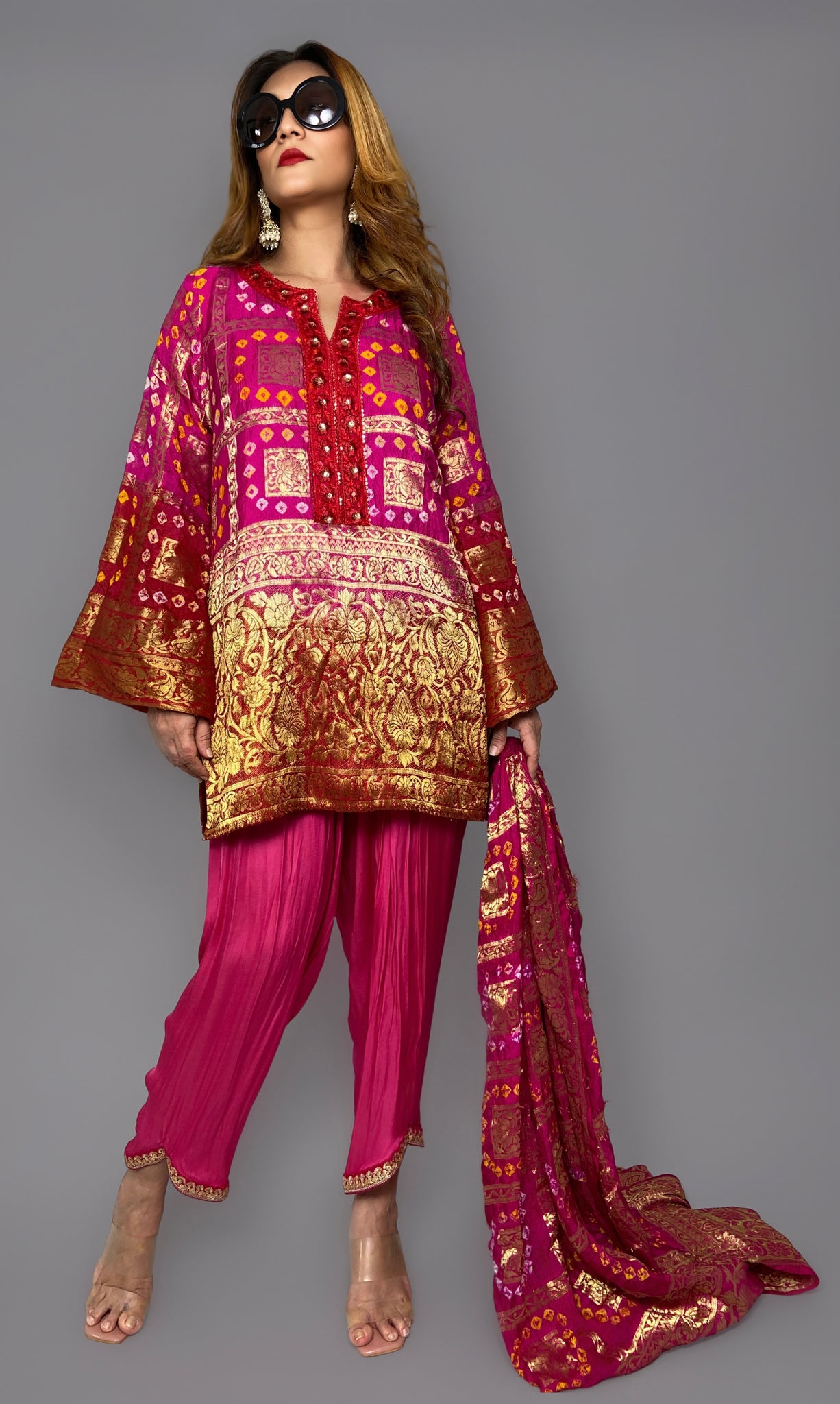 TOP - FULLY LINED WOVEN BANARASI BANDHEJ SILK