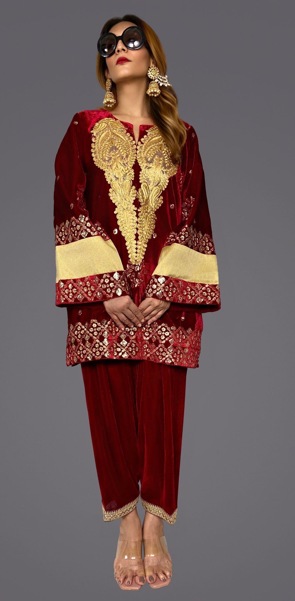 KAMEEZ - FULLY LINED, FRONT AND BACK EMBROIDERED SILK VELVET