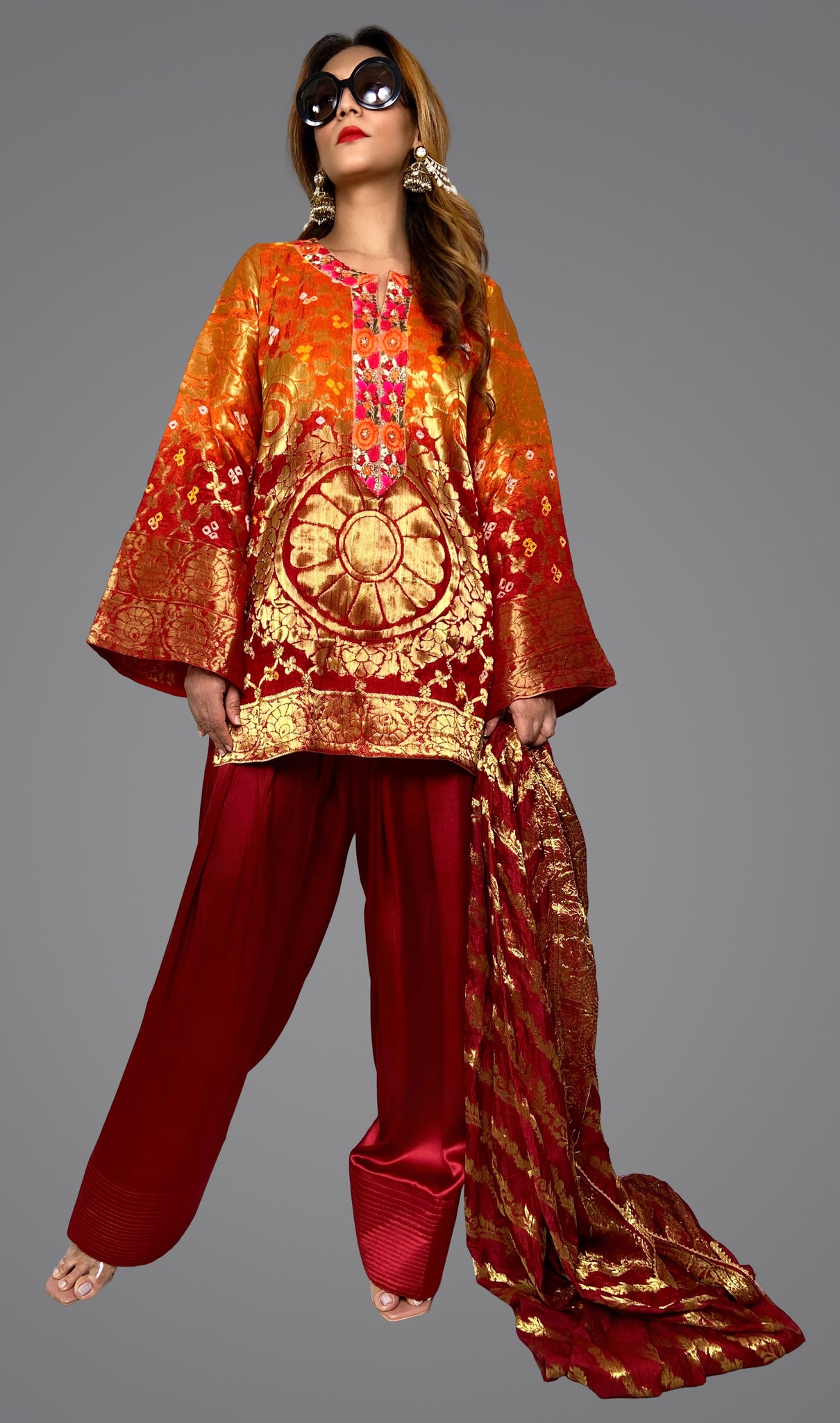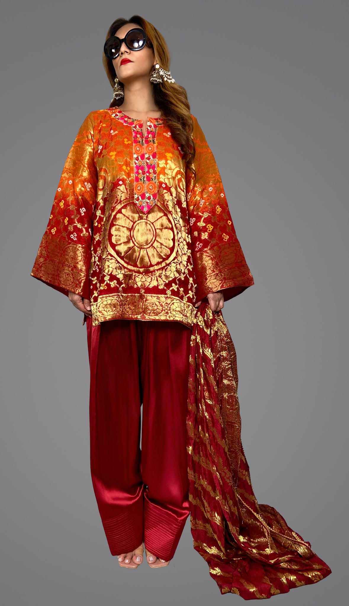 TOP - FULLY LINED WOVEN BANARASI BANDHEJ SILK.